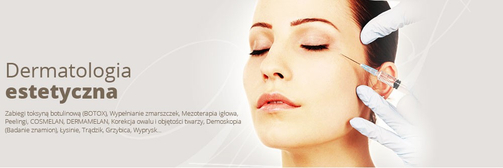 Proponujemy również szeroki zakres zabiegów z dziedziny dermatologii estetycznej takich jak: wypełnianie zmarszczek kwasem hialuronowym, zabiegi toksyną otulinową, mezoterapię igłową, Cosmelan, zabiegi z użyciem osocza bogato płytkowego, i peelingi lekarskie.